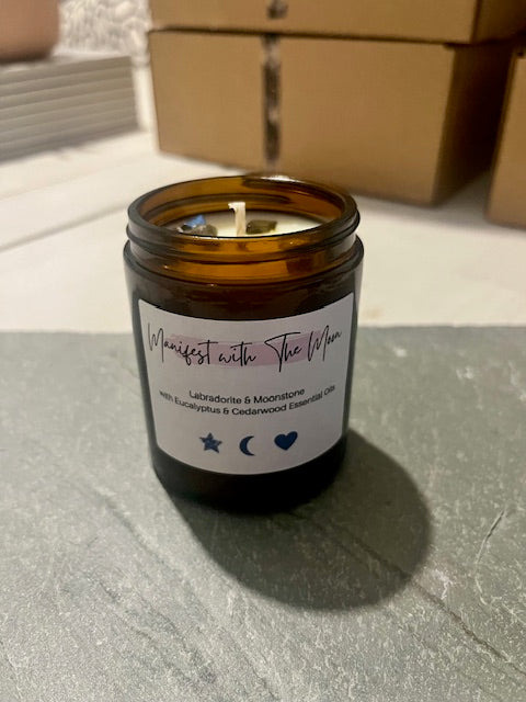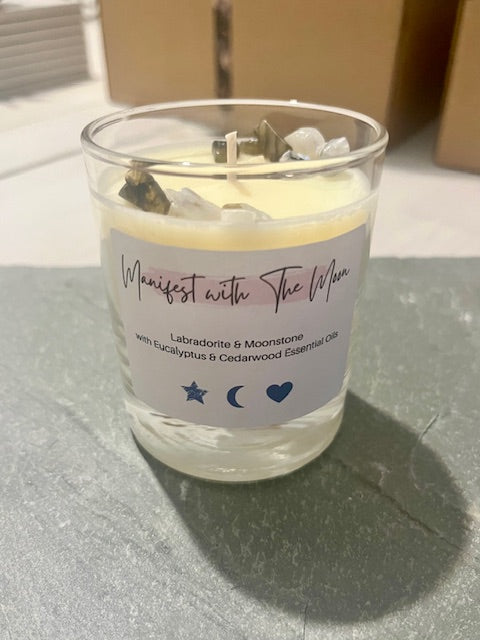 Labradorite & Moonstone with Eucalyptus & Cedarwood Essential Oils.